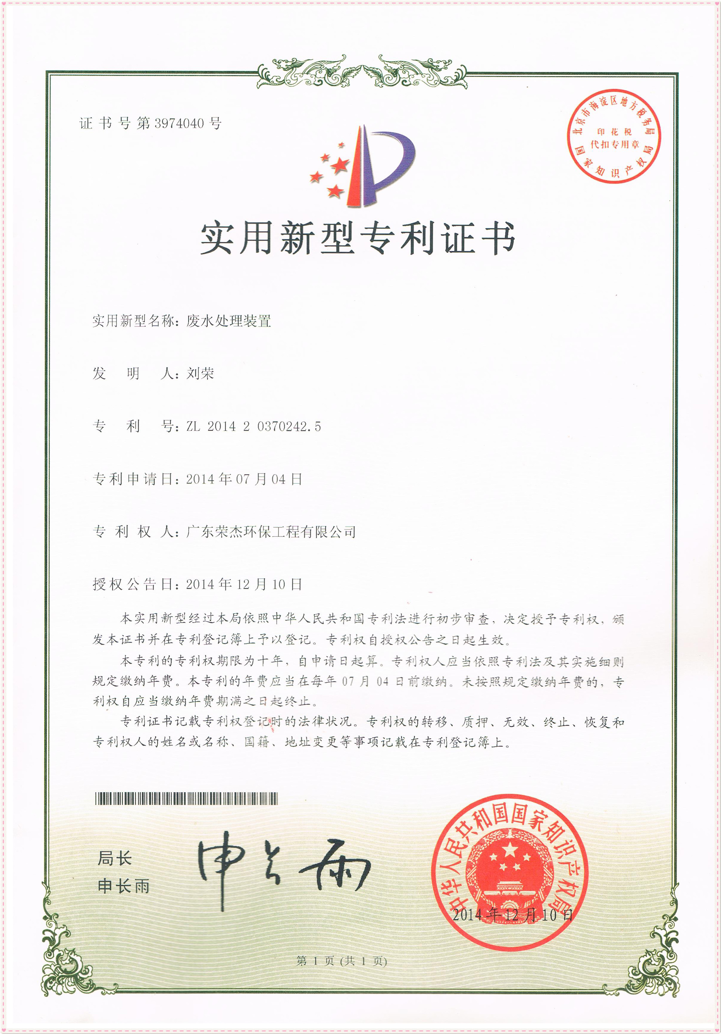 公司依托长沙环境保护职业技术学院、湖南农业大学资源环境学院、苏州城建环保学院、广东省环境保护工程研究设计院,潜心研究废水处理工程、废气工程、净水工程的最前沿工艺技术。公司拥有市政公用工程施工总承包叁级、环保工程专业承包三级资质、机电工程施工总承包叁级、建筑工程施工总承包叁级、安全生产许可证、广东省环境污染治理废水乙级、废气乙级能力评价证书、 ISO9001质量管理体系认证证书、ISO14001环境管理体系认证证书、ISO45001职业健康安全管理系认证证书、广东省守合同重信用企业证书、商品售后5星服务认证证书、资信等级AAA证书、质量.服务.诚信AAA企业。公司还拥有国家实用新型专利10项,高新技术产品2项。
