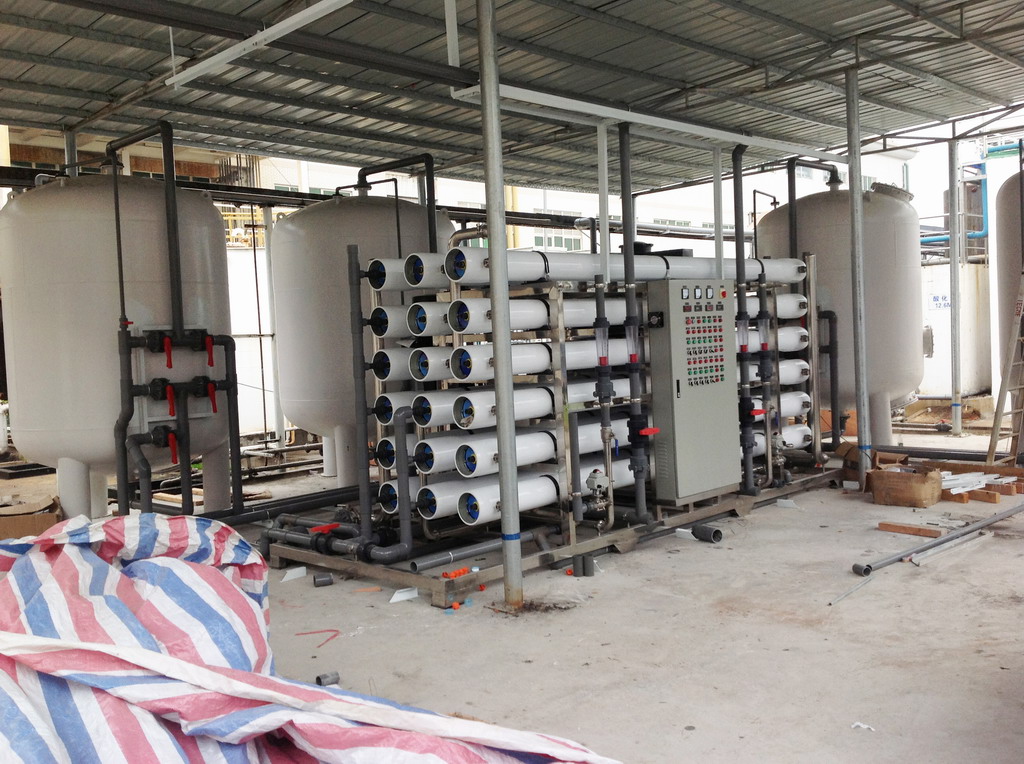 设备流程:原水→多介质过滤器→活性炭过滤器→精密过滤器→中间水箱→一级反渗透设备→ →纯水储水箱 →纯水增压泵→混床系统→